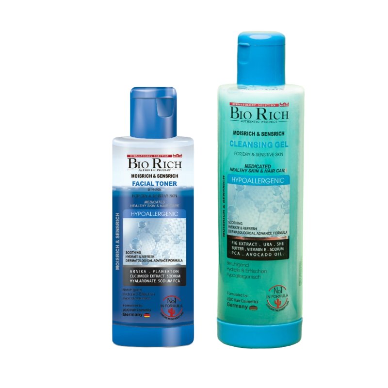 تونر دو فاز و ژل شستشوي پوستهاي خشك و حساس بايوريچ محصولی از جوجو آلمان که يك شوينده و آب رسان ملايم است كه آلودگيهاي روزانه رابرطرف ميكند.استفاده از اين محصول به تسكين پوستهاي ملتهب كمك كرده و باعث افزايش رطوبت در پوست صورت به خصوص پوستهاي حساس ميشود كه احساس خنكي و آرامش ميكند. با چربی کاملا کنترل شده در هنگام زدودن آلودگی ها، خشکی های سطحی پوست را ترمیم می نماید. وجود عصاره گیاه عشقه ،عصاره پلانکتون ،عصاره خیار و سدیم هیالورونات،عصاره گل تنباکوی کوهی و دی پنتنول در این محصول هیدراسیون پوست را بالا برده، الاستیسیته پوست را افزایش بخشیده، تاثیر بسیار مناسبی بر روی کاهش التهاب و خارش پوست گذاشته و سوخت و ساز سلولی را کنترل می نماید. تونر دو فاز و ژل شستشوي پوستهاي خشك و حساس بايوريچ محصولی از جوجو آلمان که يك شوينده و آب رسان ملايم است كه آلودگيهاي روزانه رابرطرف ميكند.استفاده از اين محصول به تسكين پوستهاي ملتهب كمك كرده و باعث افزايش رطوبت در پوست صورت به خصوص پوستهاي حساس ميشود كه احساس خنكي و آرامش ميكند. با چربی کاملا کنترل شده در هنگام زدودن آلودگی ها، خشکی های سطحی پوست را ترمیم می نماید. وجود عصاره گیاه عشقه ،عصاره پلانکتون ،عصاره خیار و سدیم هیالورونات،عصاره گل تنباکوی کوهی و دی پنتنول در این محصول هیدراسیون پوست را بالا برده، الاستیسیته پوست را افزایش بخشیده، تاثیر بسیار مناسبی بر روی کاهش التهاب و خارش پوست گذاشته و سوخت و ساز سلولی را کنترل می نماید.