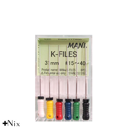 K-Files مانی به دلیل انعطافپذیری بالا، بدنه گرهایشکل و سطح مقطع مربعی یا مثلثی متقارن، ابزار بسیار مناسبی برای تمیز کردن، شکلدهی و آمادهسازی کانال ریشه در درمانهای دستی اندو بهشمار میروند. استفاده از این فایلها پیش از ورود به مرحله فایلینگ روتاری، دقت و ایمنی درمان را افزایش میدهد.